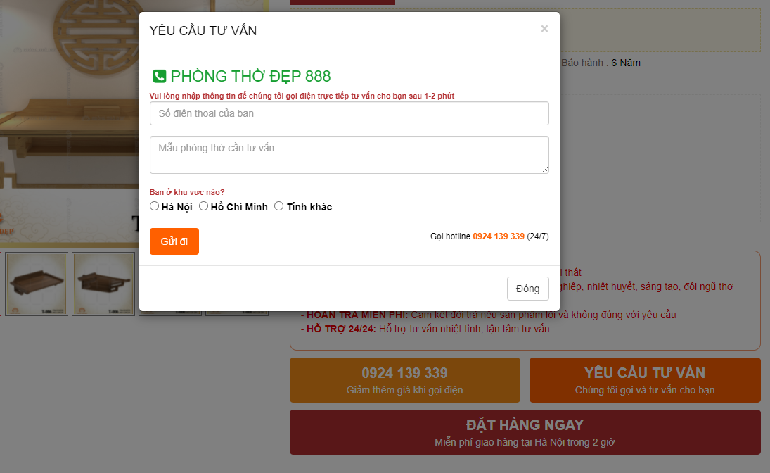 - Người dùng có thể gửi yêu cầu cần tư vấn linh động bằng cách click vào nút "YÊU CẦU TƯ VẤN'. Ngay sau 30s người dùng và người quản trị website có thể nhận được thông báo cần tư vấn nhanh chóng, chính xác.