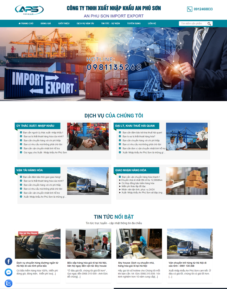 - Tại website dịch vụ vận chuyển, người quản trị website có thể tùy ý sắp xếp các danh mục dịch vụ, tin tức nổi bật để tiếp cận Khách Hàng nhanh hơn.