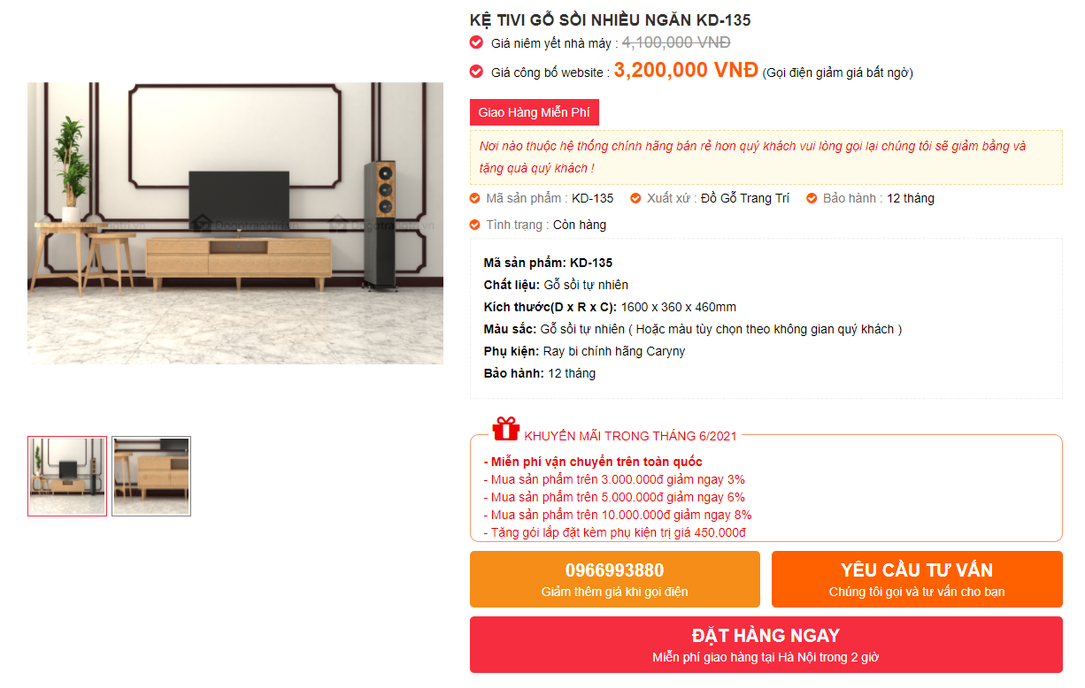3. Trang chi tiết sản phẩm của website nội thất luôn ưu tiên thông tin sản phẩm nổi bật, thông tin tư vấn, bán hàng đặc biệt là chức năng đặt hàng nhanh chóng.