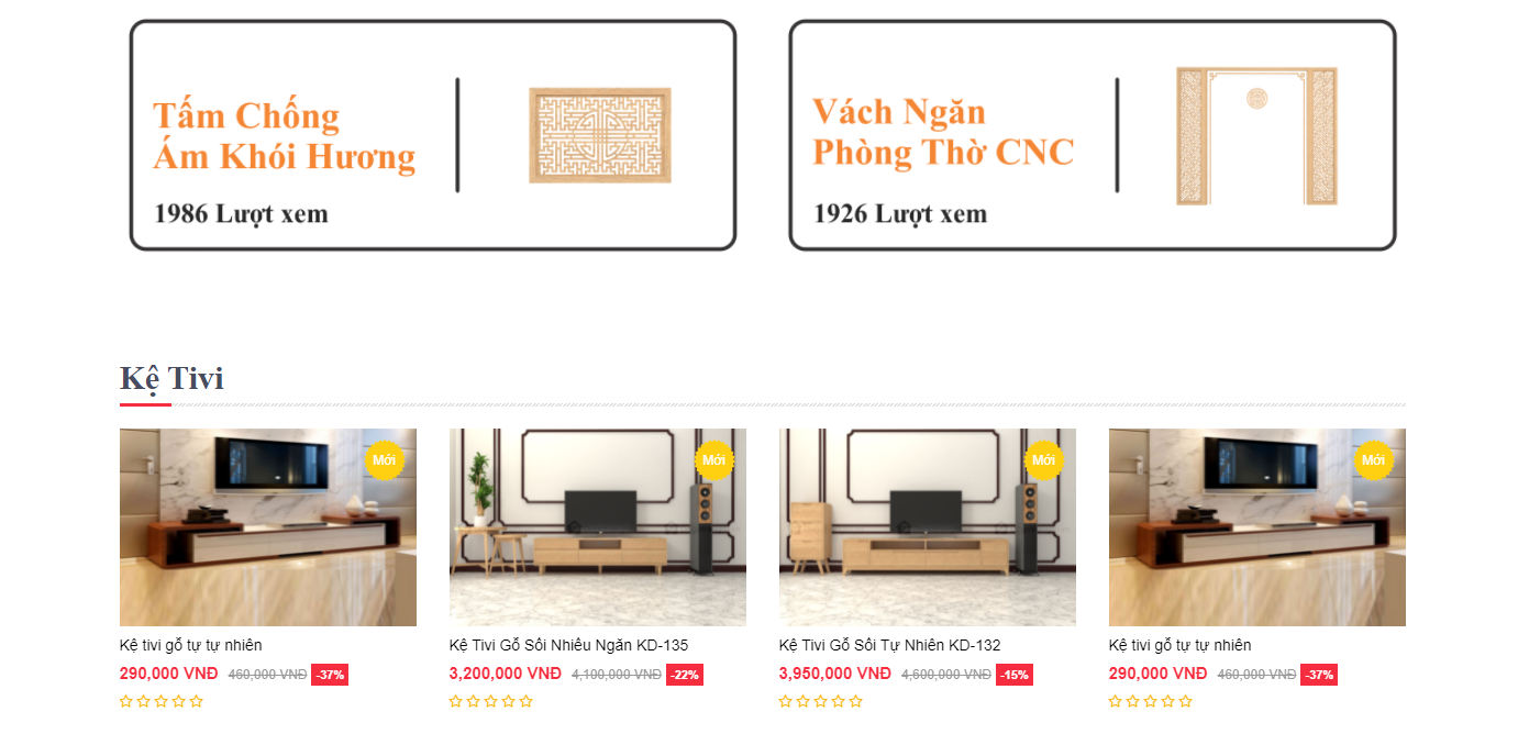 - Tại website bán hàng nội thất, người quản trị website có thể tùy ý sắp xếp các danh mục sản phẩm nổi bật để tiếp cận Khách Hàng nhanh hơn.